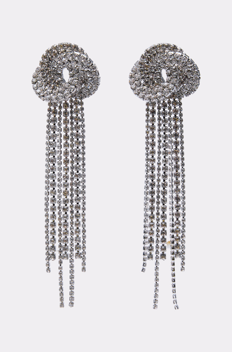 The AKIRA Label At The Party Earrings are designed to sparkle all night with their dazzling rhinestone rosette tops and cascading fringe drops. Featuring layered strands of rhinestones for maximum shine, these statement earrings bring movement and elegance to any look. Complete with standard post-back fastenings.