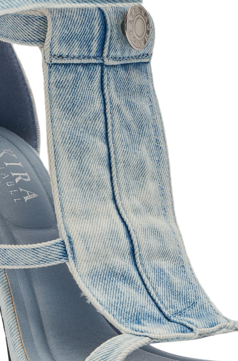 AKIRA GOLD NORMA JEAN DENIM STRAPPY STILETTO SANDAL