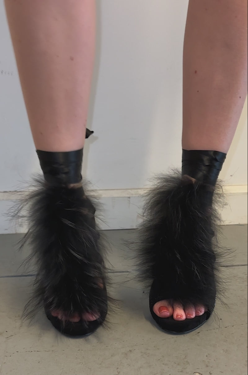 AZALEA WANG ANTIRI BLACK SPARKLE AND FUR SANDAL