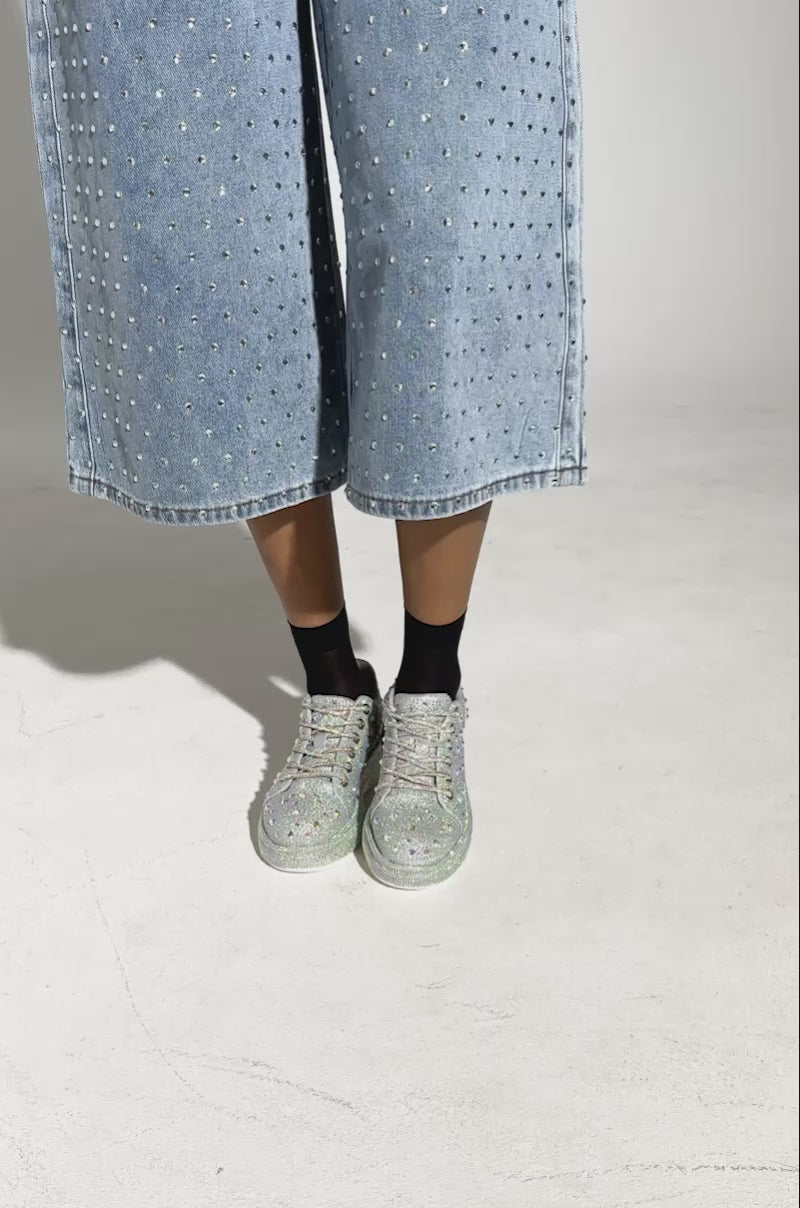 AZALEA WANG AZURE SILVER RHINESTONE SNEAKER