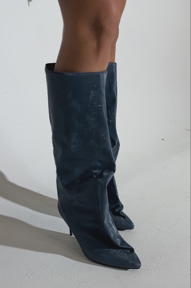 AZALEA WANG COUTURE CRAZY BLUE LUXE SHINE LOOK BOOT