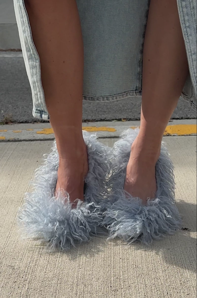 AZALEA WANG JAMEEKA BABY BLUE CURLY FUR PUMP STILETTO HEEL