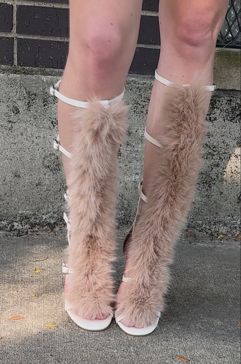 AZALEA WANG JUSTYCE IVORY FUR GLADIATOR SANDAL