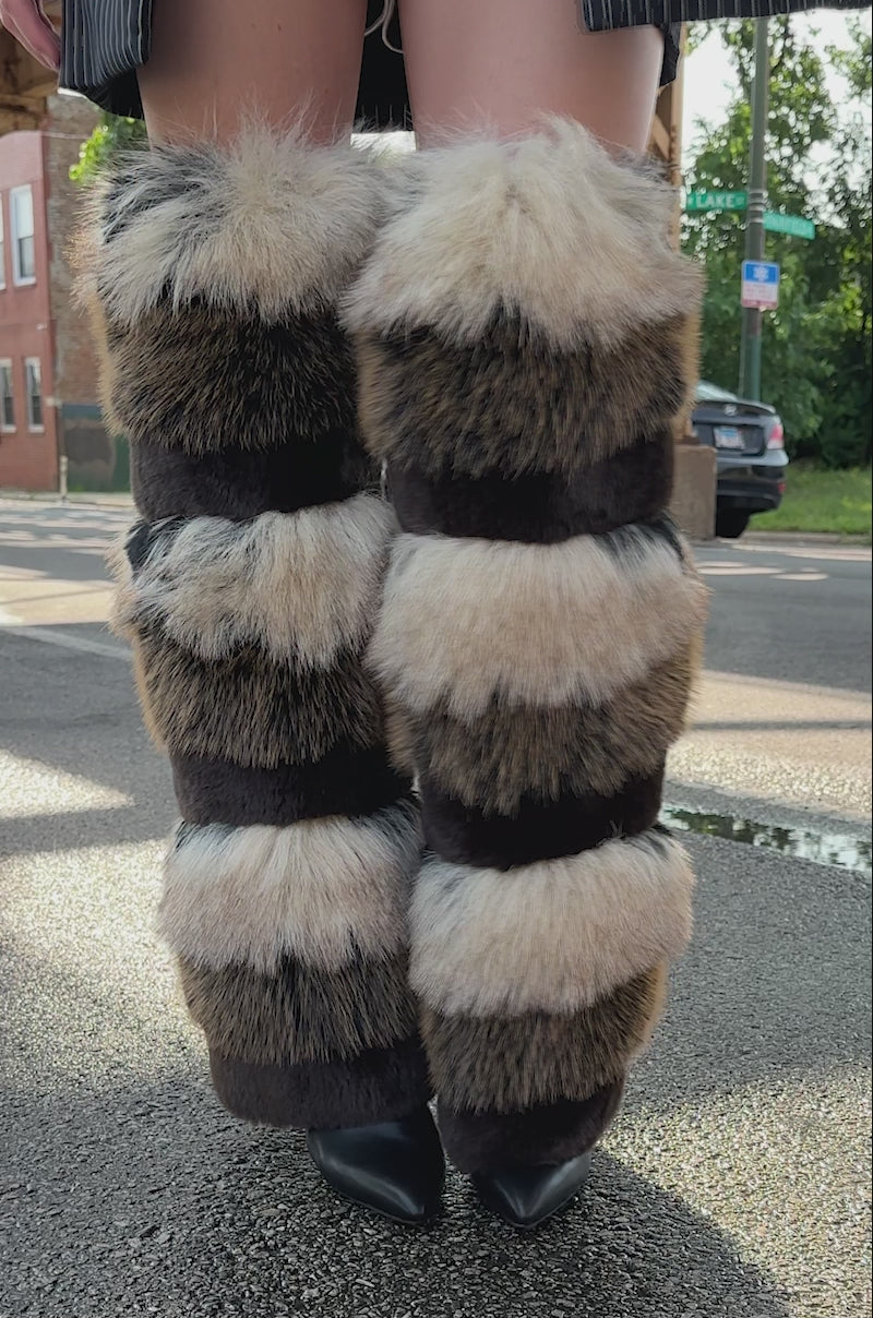 AZALEA WANG LANGLAU BROWN MULTI STILETTO FUR BOOT