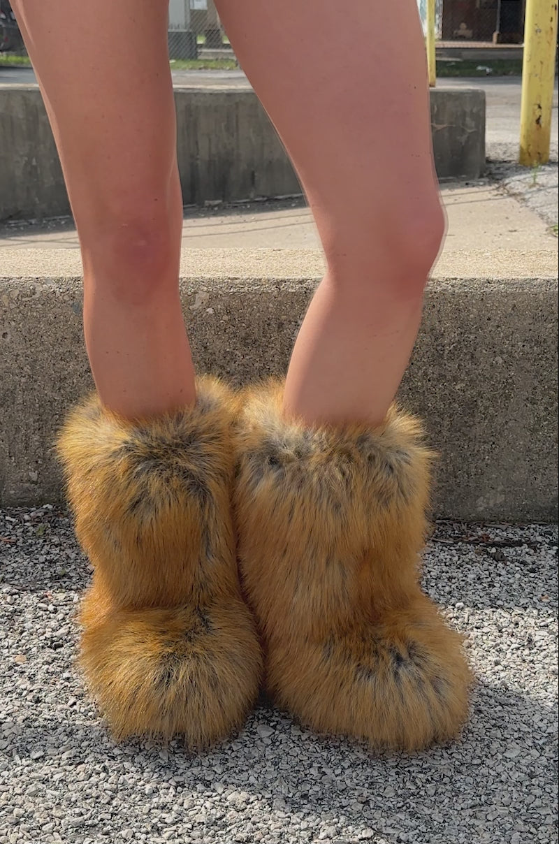 Sleigh this season in the AZALEA WANG Nadianna Tan Flat Fur Bootie. These ultra-shaggy boots are crafted from lavish faux fur and feature a padded mid-calf shaft, a textured rubber flatform sole, a rounded toe silhouette, and a textured outsole. Complete with a pull-on fit.