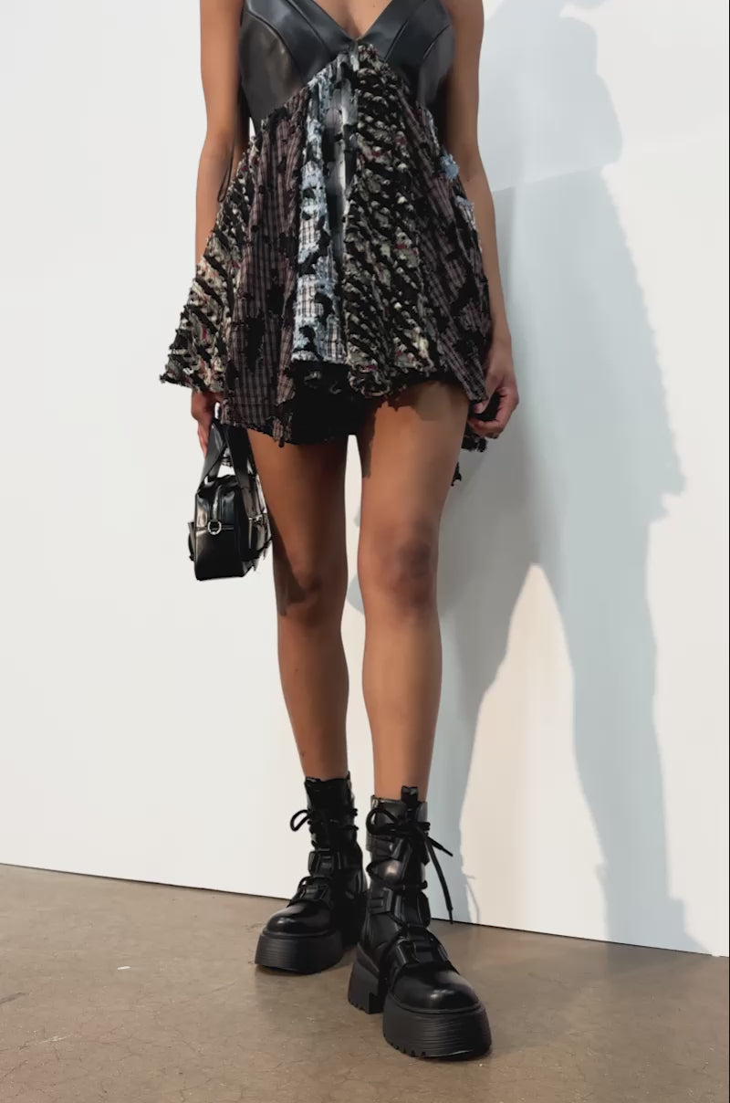 Ready for anything in The AZALEA WANG Roisin Black Combat Bootie. Crafted from smooth vegan leather, these bold beauties feature an almond toe silhouette, a flatform lug sole with a coordinating chunky heel, and a mid-calf shaft. The matte buckle accent on the outer shaft and the unique tonal lace-up vamp, which crisscrosses across the entire shoe, add a fierce, fashion-forward touch. Complete with pull tabs at the top shaft, an inner ankle zip closure, and an easy pull-on fit, these booties are as practical as they are stylish.