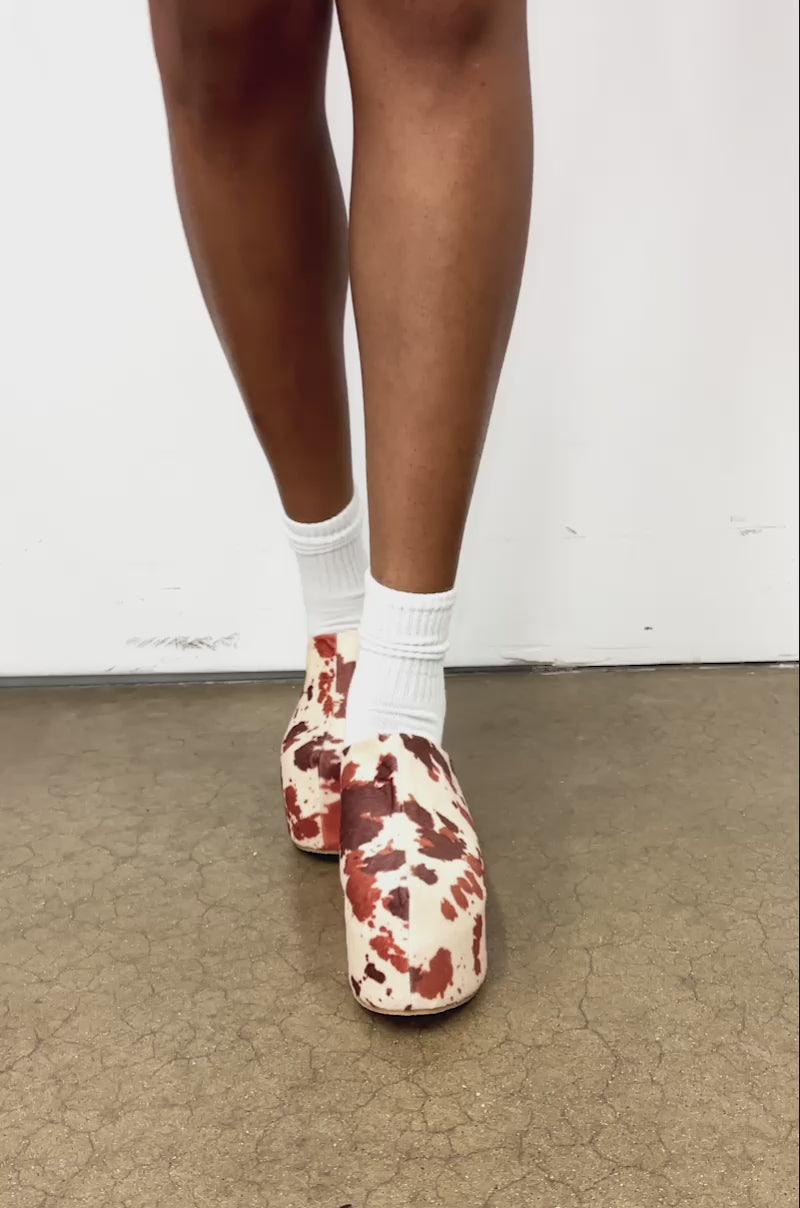 Moo-ve aside, boring shoes! The AZALEA WANG Teatree Cow Clog features a soft, faux pony hair upper adorned with a cute cow print, a sturdy flatform sole and coordinating chunky heel, a faux leather instep with a Comfort Cushion insole, and an easy step-in fit. Style with an oversized sweater and a midi skirt for an easy, adorable ensemble.