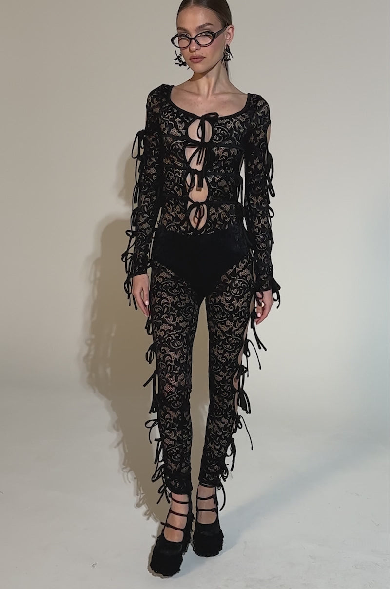 BADDIE ALERT LACE JUMPSUIT WITH TIES