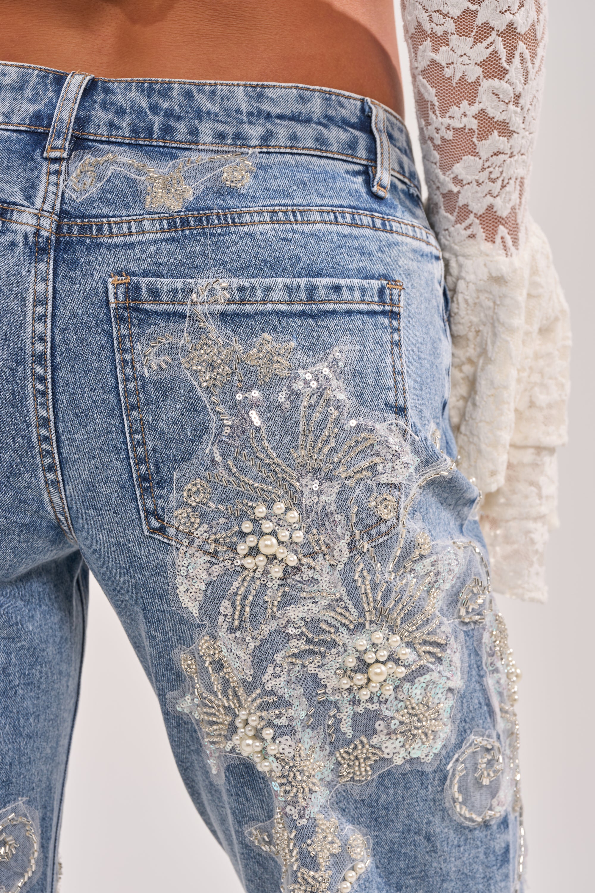 BILLIONAIRE BELLE RHINESTONE AND PEARL JEANS