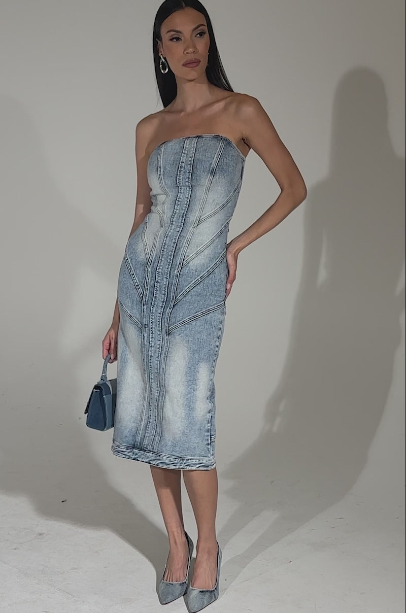 BROOKLYN BADDIE DENIM MIDI DRESS
