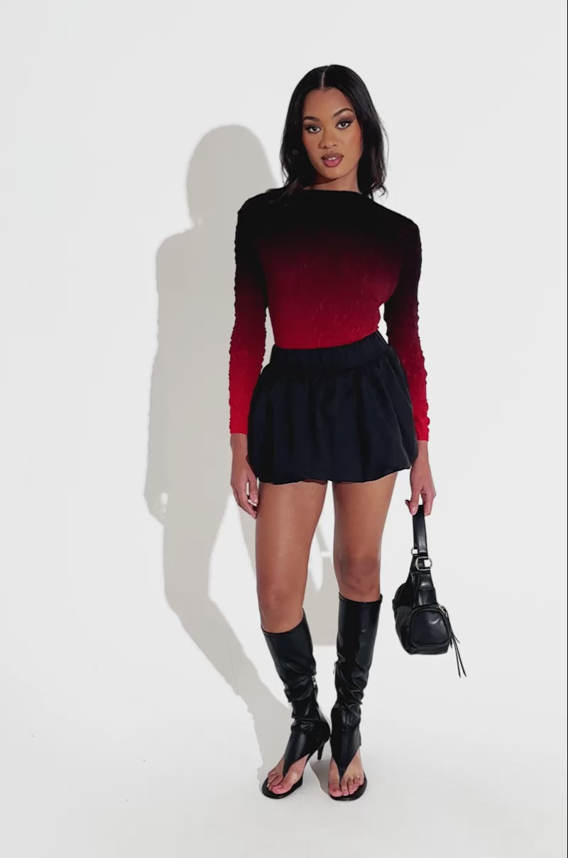 Floating on Cloud 9 in The AKIRA Label Bubble Bubble Bubble Skirt In Black. This wardrobe must-have is crafted from a lightweight fabrication and features a high rise design, a stretchy shirred elasticized waistband, and a flouncy, bubble silhouette. Complete with a sleek inner lining, a mini length, and an easy, pull-on fit. Pair with a cropped tank and platform pumps for a finished look.