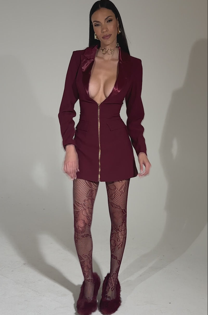 BUSINESS CASUAL BLAZER DRESS IN BURGUNDY
