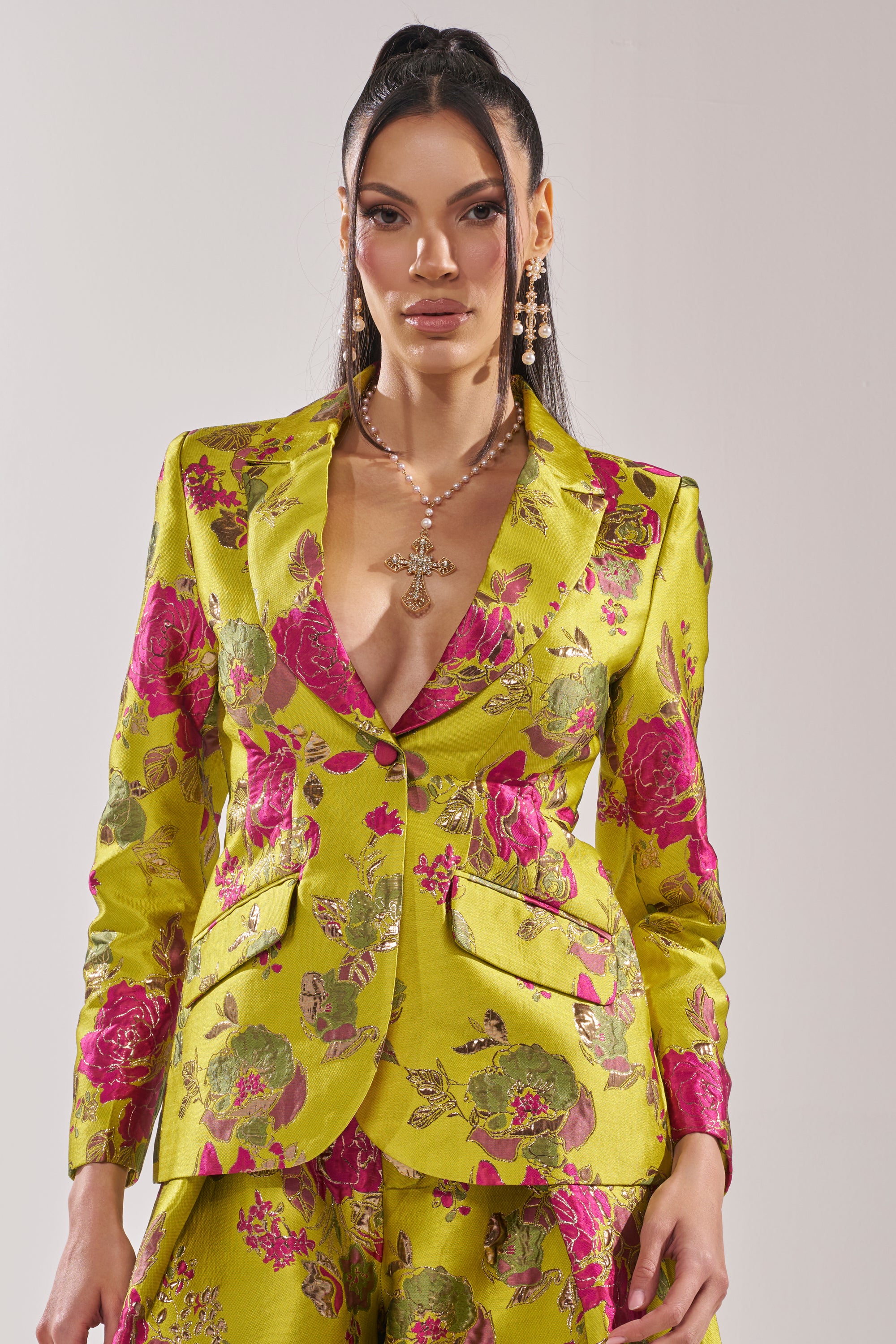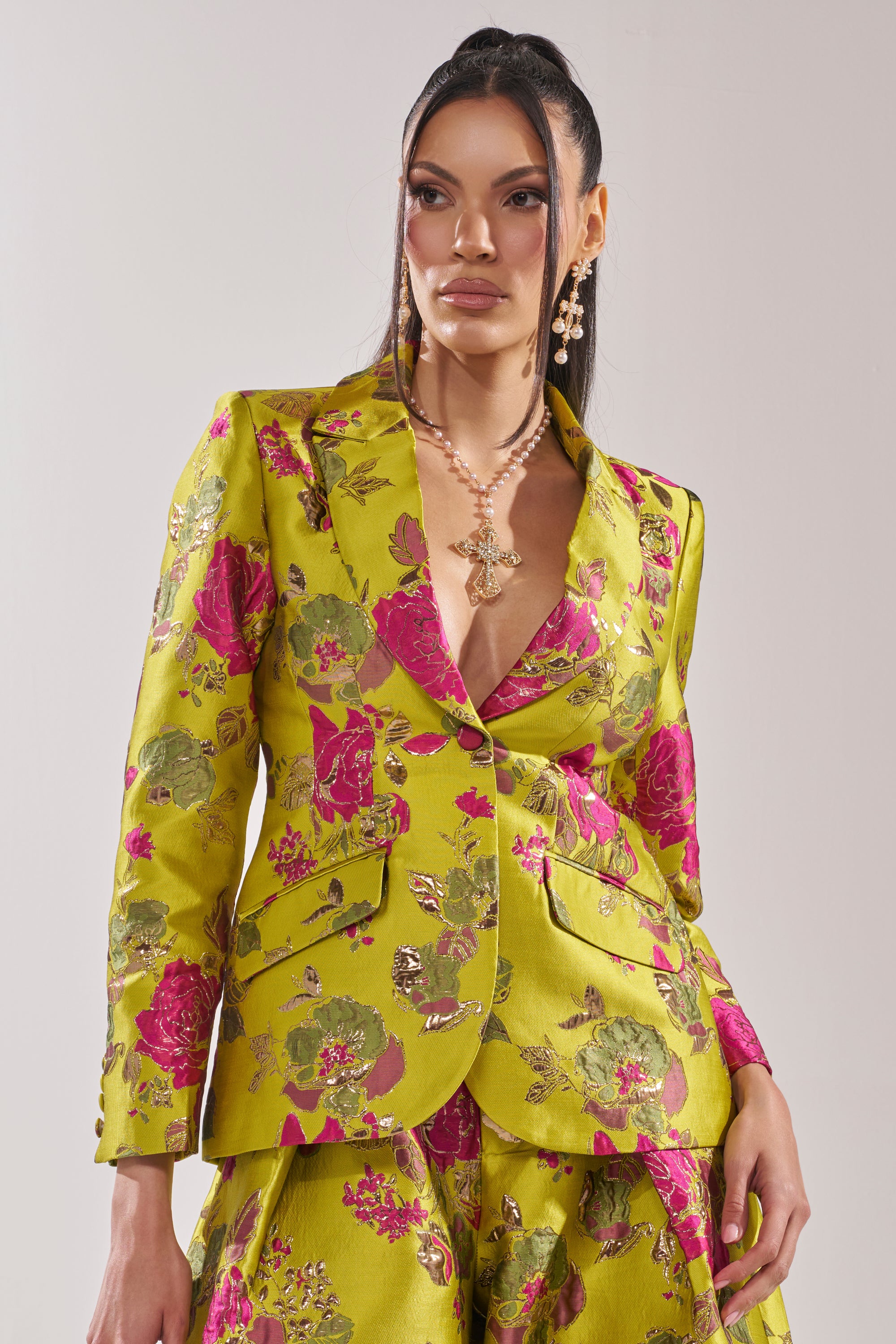 BUY MYSELF FLOWERS BROCADE BLAZER IN LIME