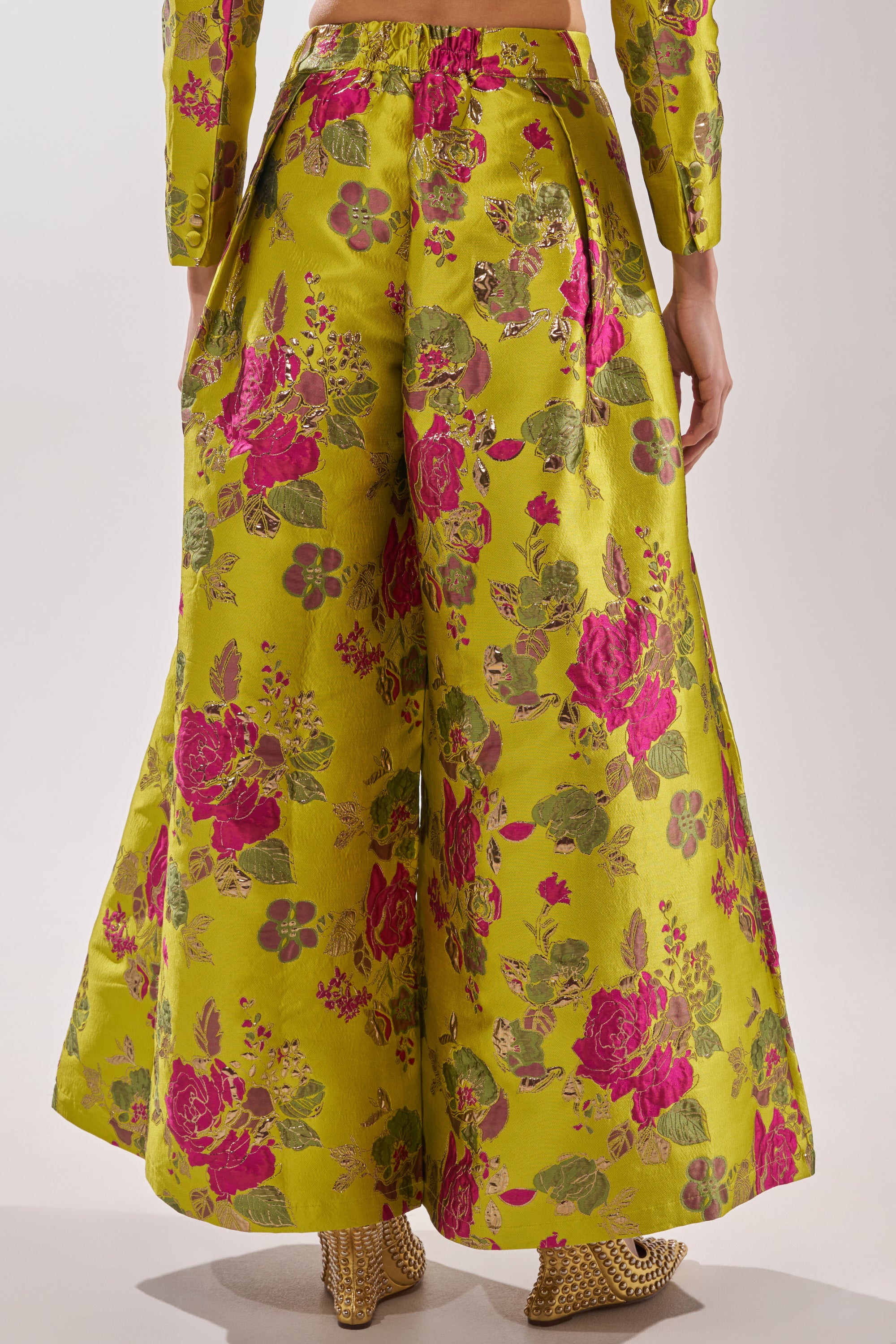 BUY MYSELF FLOWERS BROCADE TROUSER IN LIME