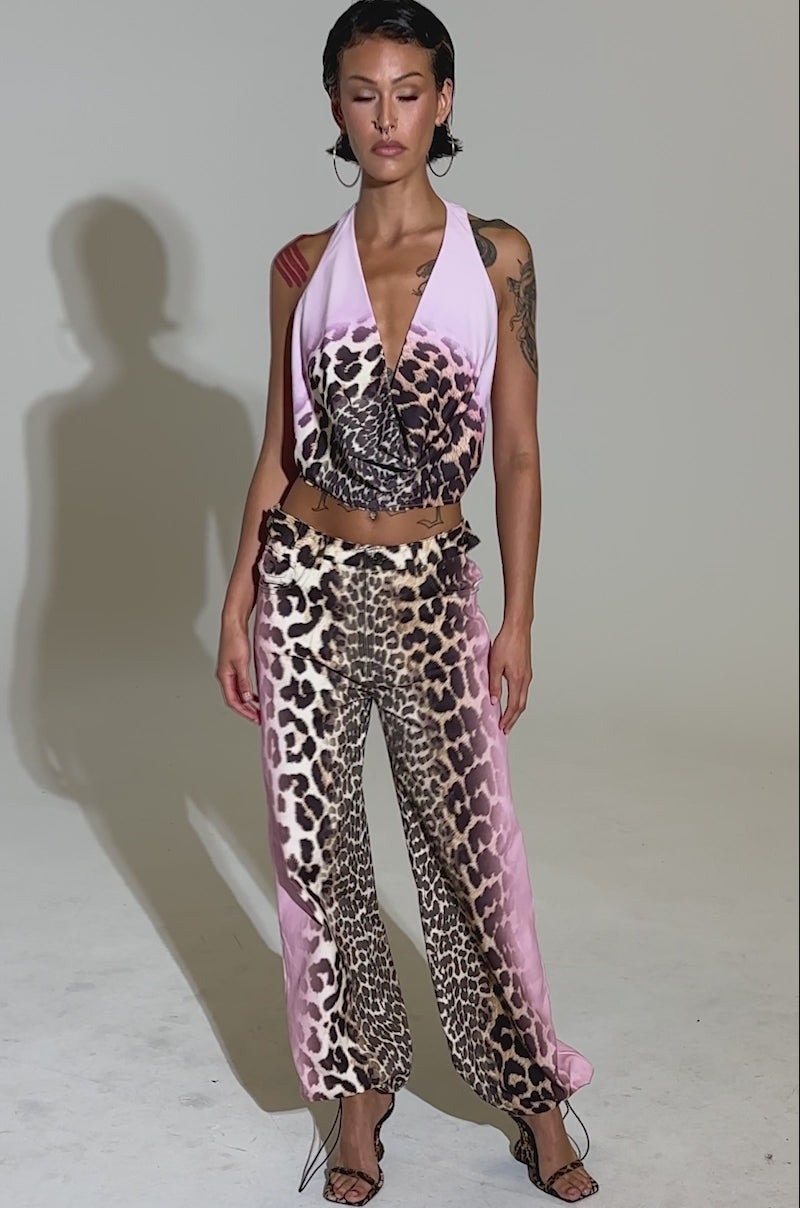 Go wild in The AKIRA Label Coco Leopard Print Denim. Crafted from non-stretch cotton with a structured, straight-leg silhouette, these jeans feature a five-pocket design with button-flap back pockets, a zip-button front fly, functional belt loops, and a stand-out design of fierce leopard print that fades to soft pink at the seams. Complete the look with the matching jacket and halter top for the ultimate statement set.