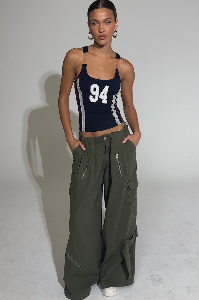 It’s your time to shine in The AKIRA Label Cool Girl Era Trouser. Crafted from breathable cotton, these cargo pants feature a high-rise fit, dual panels on the waistband, a four-pocket design with additional cargo flap pockets on the thighs, silver-tone zipper detailing throughout, a unique strappy accent on the lower left leg, and a classic front button-zip fly. Complete with an oversized, wide-leg silhouette. This trouser offers endless styling possibilities, effortlessly transitioning from laid‑back looks with sneakers to elevated day‑to‑night outfits paired with a clutch and pumps.