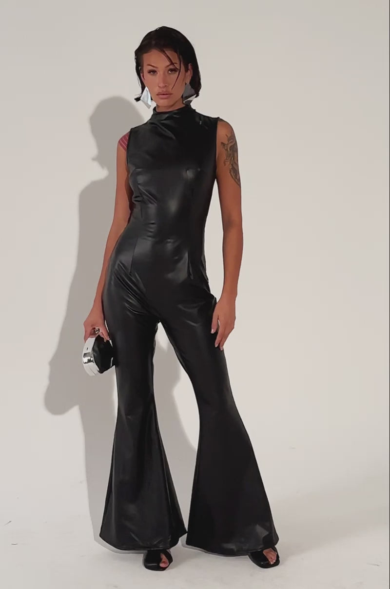 DANCE WITH ME BELL BOTTOM PU JUMPSUIT