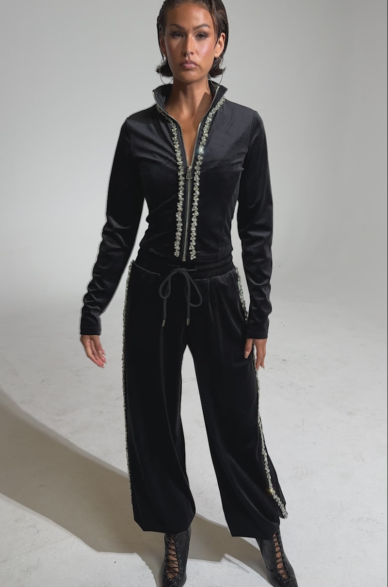 DARA RHINESTONE MOCK NECK ZIP-UP SWEATSHIRT