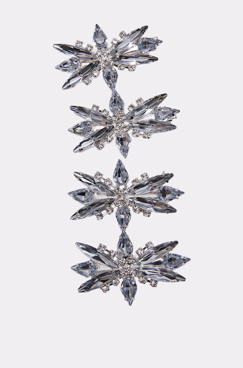Don't need a tiara when you have The AKIRA Label Deco Rhinestone 4 Pk Clips. This opulent accessory pack contains four ornately decorated silver-tone barrette-style clips, adorned with high-shine gemstone detailing.