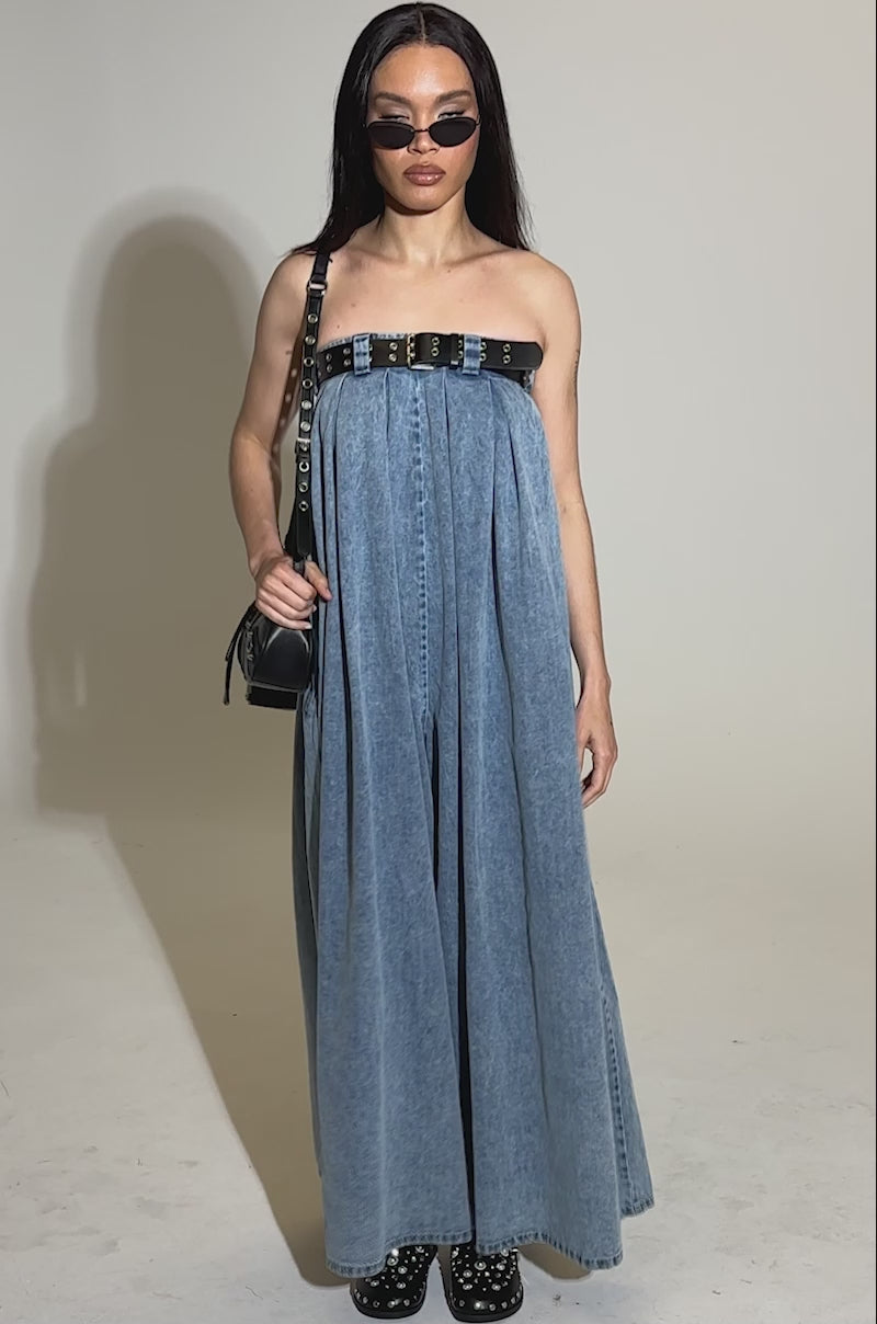 DIANE STRAPLESS OVERSIZED JUMPSUIT IN DENIM