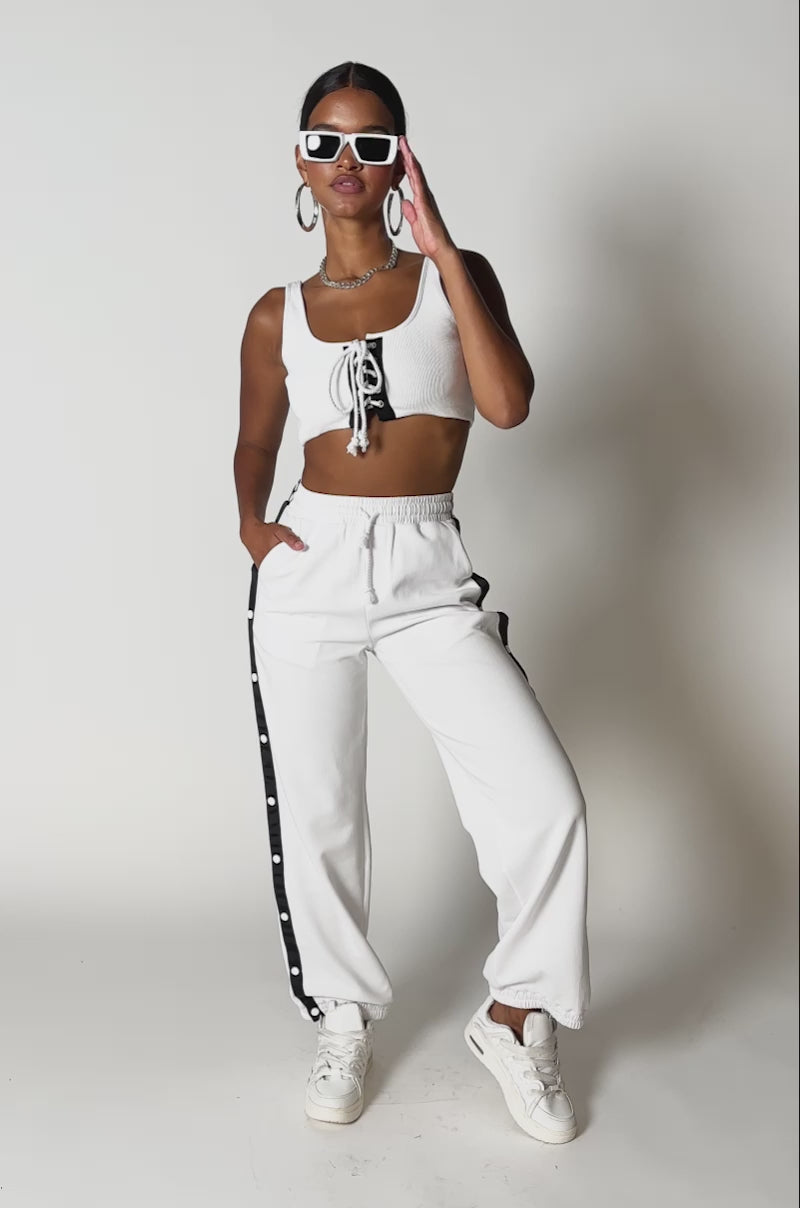 Oh, you didn’t know? That you’re all that in The AKIRA Label Didn’t They Tell You Lace Up Bralette Top. This flirty bralette is crafted from a stretchy, ribbed knit fabrication and features a scoop neckline, wide tank straps, and a contrast front lace-up panel with silver metallic grommet hardware. Complete with an easy, pull-on fit, and an ultra cropped silhouette. Pair with the coordinating AKIRA Label Didn’t They Tell You Wide Leg Break Away Sweat Pant for a seamless ensemble.