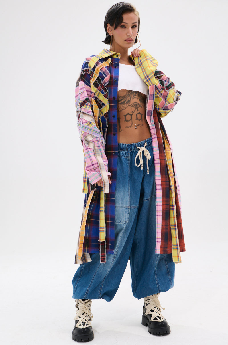 DONT EVEN MIXED PLAID LONG BUTTON DOWN