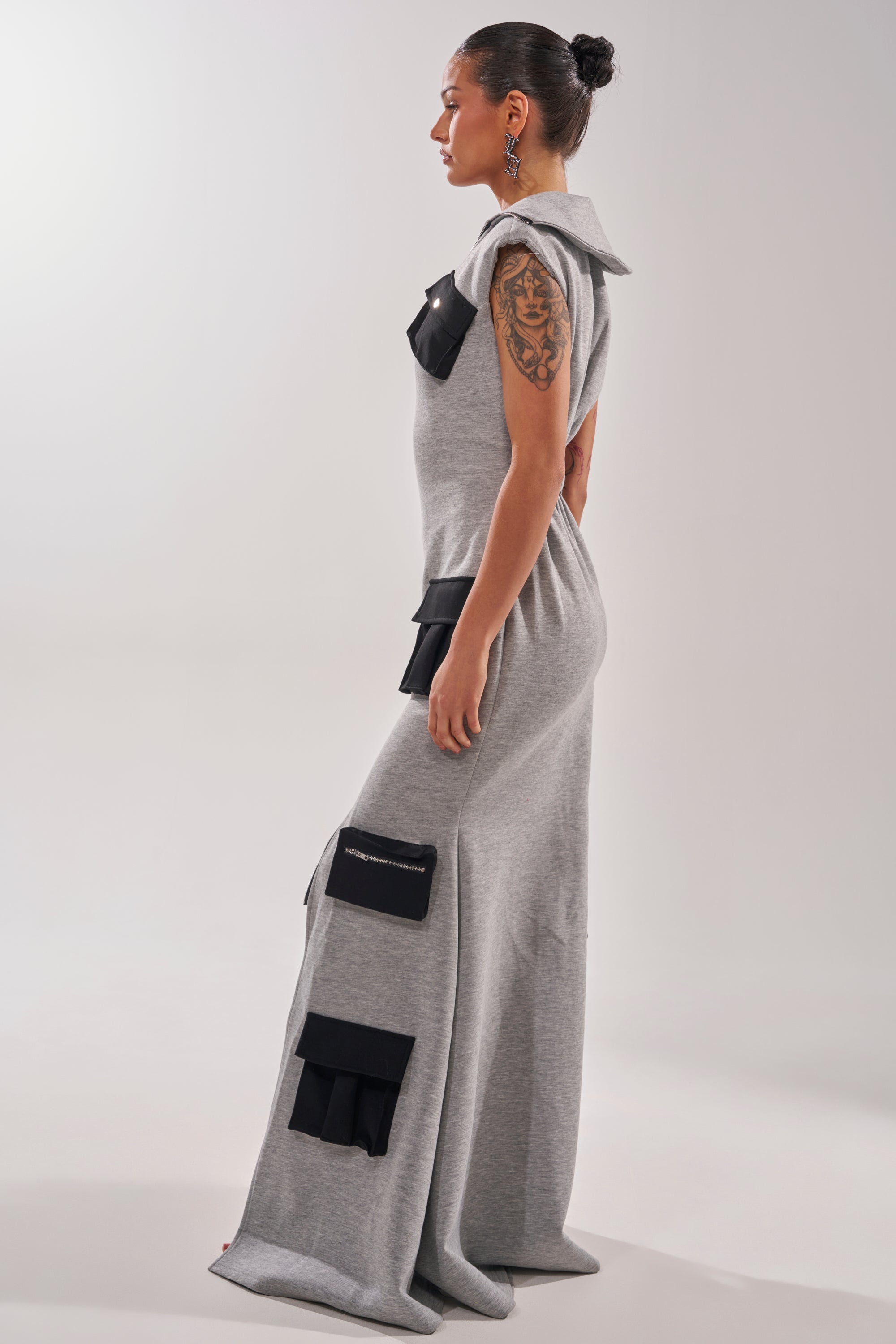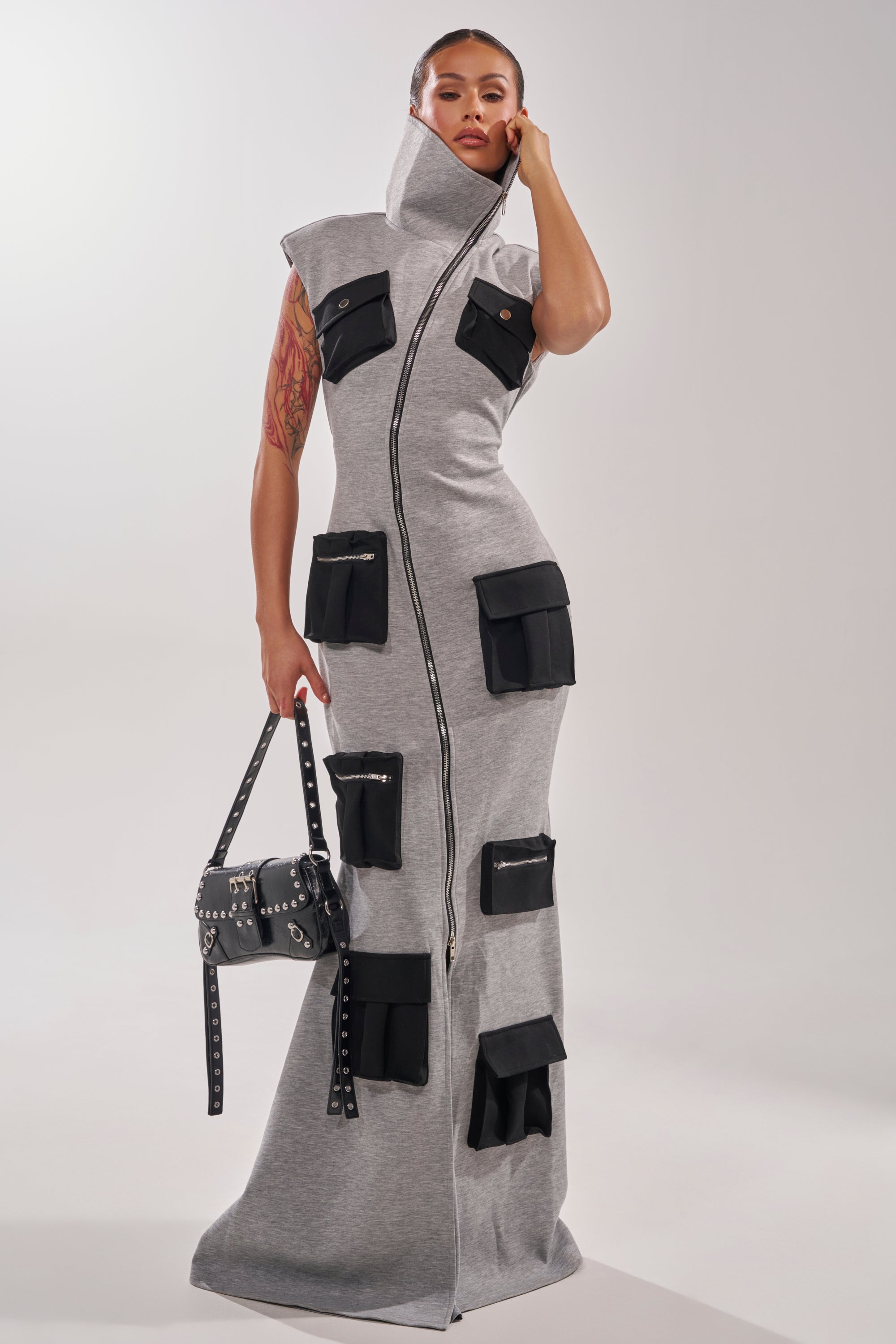 DON'T MESS WITH ME COLLARED MAXI DRESS IN GREY SCUBA