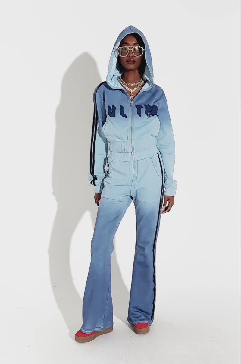 Stay booked n’ busy in The AKIRA Label Don’t Talk To Me I’m Running Errands Zip Up Sweatshirt. This effortlessly stylish piece is crafted from a cozy cotton base and features a subtle ombré colorway, an attached hood, long sleeves with contrast striped detailing running down the sides and elasticized cuffs, the embroidered phrase “Ultra” across the chest with subtle distressed detailing, and a coordinating cinched waistband. Complete with a metallic front zip closure, and a cropped silhouette. Pair with the coordinating AKIA Label Don’t Talk To Me I’m Running Errands Sweatpant and furry booties for the perfect on-the-go fit.