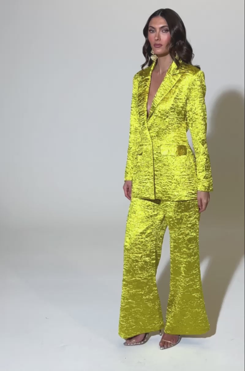 Rack up the dollar signs in The AKIRA Label Expensive To Be Me Blazer. Crafted from lustrous satin, this glam jacket features a classic notch lapel collar with a plunging neckline, padded shoulders for extra structure, and long sleeves. With mock waist pockets, a back vent slit, and a single-button front closure, this blazer exudes sophistication. Complete with a silky tonal inner lining and a fitted, longline silhouette. Style it with the complementary AKIRA Label Expensive To Be Me Trouser, a cropped tank, and kitten heels for a luxurious finish.