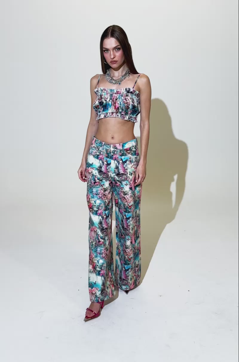 We know what women want… Spoiler alert, it’s The AKIRA Label Female Fantasy Denim Pants. These high-rise jeans feature a wide-leg silhouette, a classic five-pocket design, functional belt loops, and a zip-button front closure. They’re adorned with a romantic, candy-colored print inspired by classical art that emanates whimsical fairy vibes. Wear them with the coordinating Female Fantasy Printed Satin Ruched Top and Denim Jacket for an angelic ensemble.