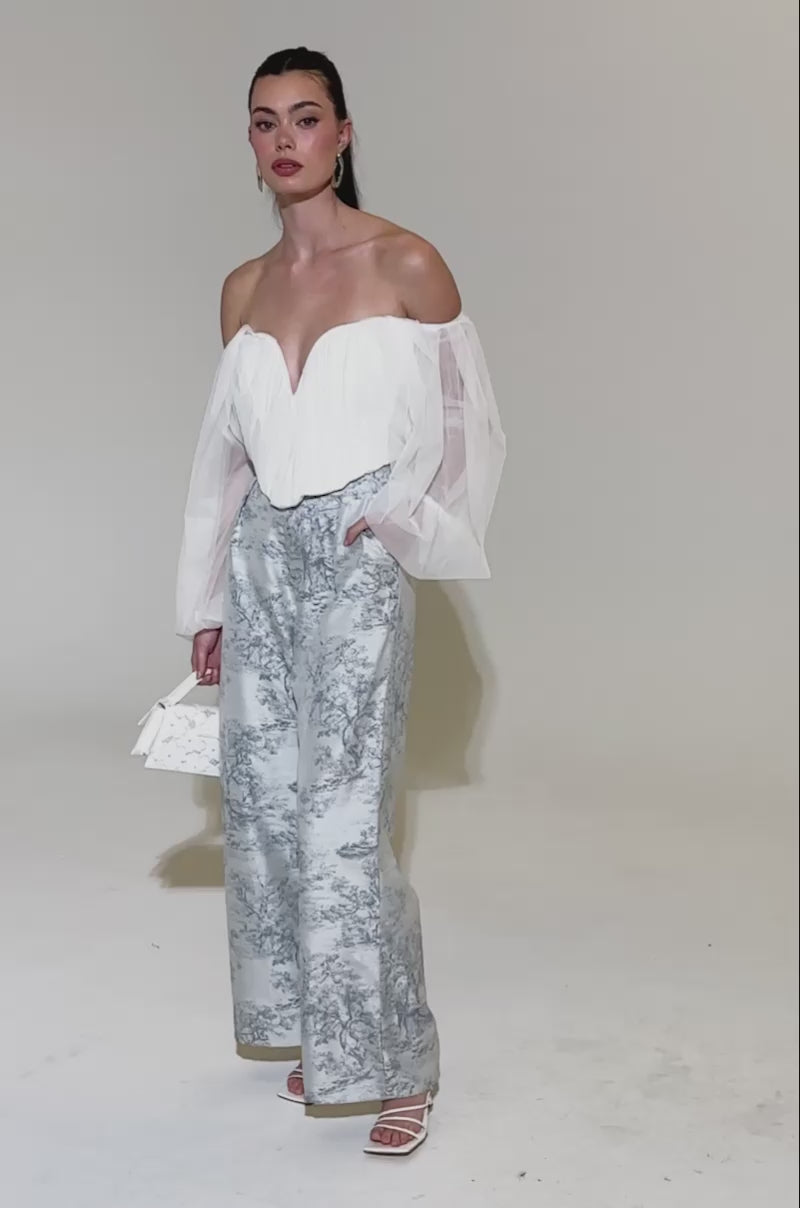 Play among the stars in The AKIRA Label Fly With Me Corset Top in White. This cropped cutie features a curve-hugging silhouette, a plunging sweetheart neckline, a pointed hem, internal structural boning, and an off-the-shoulder design with sheer, puffy organza sleeves. It’s complete with a slick interior lining, a tonal zip back closure, and a sheer mesh overlay with pretty pleating throughout. Style with high-rise denim, strappy stilettos, and an oversized hair bow for the perfect date-night look.