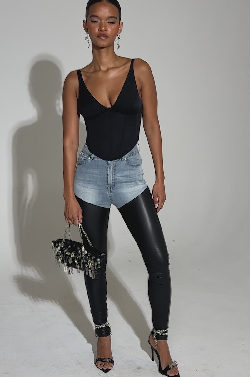 FREE SPIRIT SLEEVELESS CORSET TOP IN BLACK