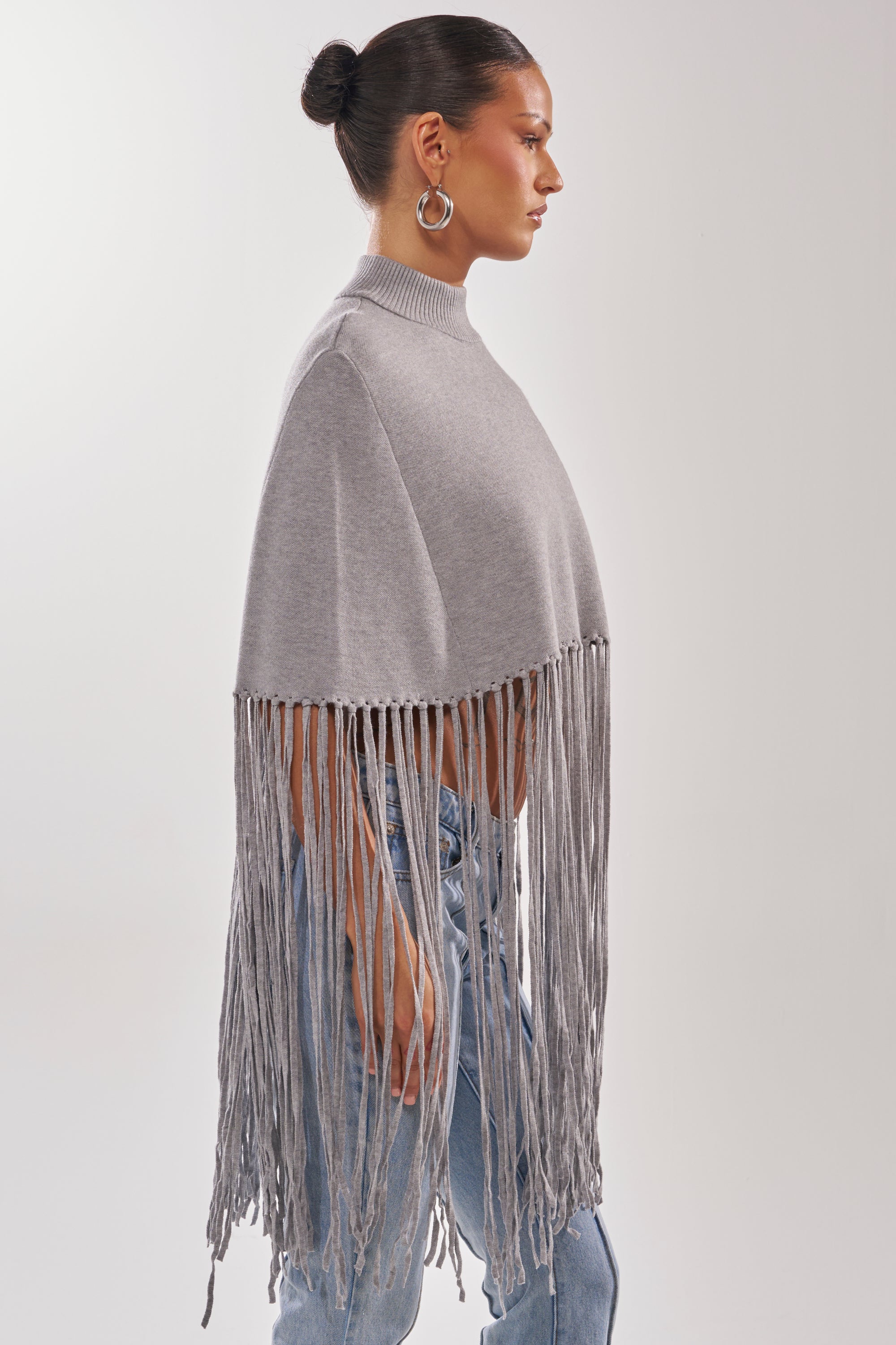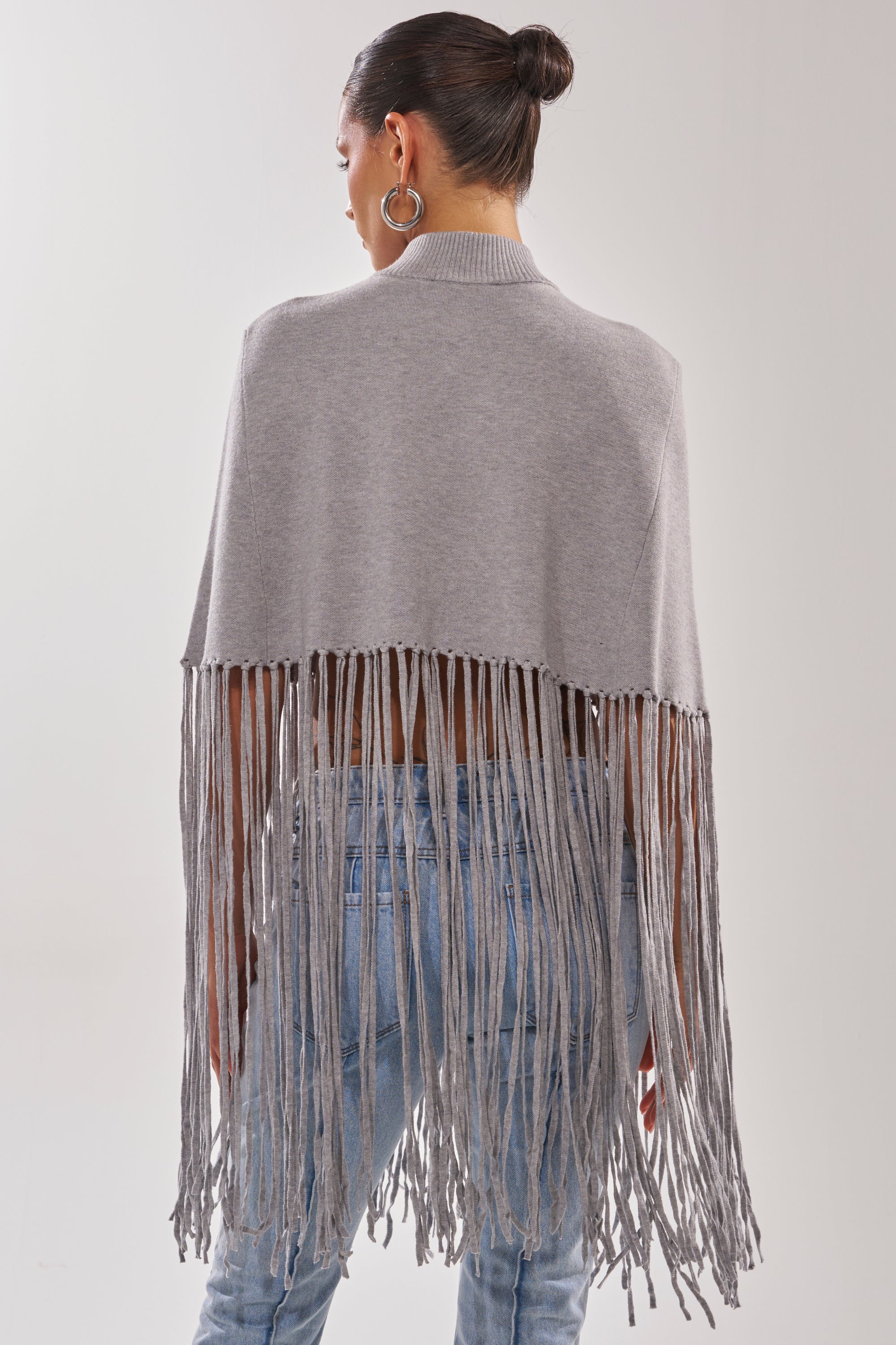 Swing into sweater weather with The AKIRA Label Fringe For Days Sweater. Crafted from a super soft and stretchy knit fabric, this sophisticated layering piece features a flowy, poncho-like silhouette with a tonal, rib knit mock neck and cascading fringe detailing on the hemline that extends down the thighs. Complete with an easy, pull-on fit. Layer over thin blouses, thermal tops, and tanks for a chic finish.