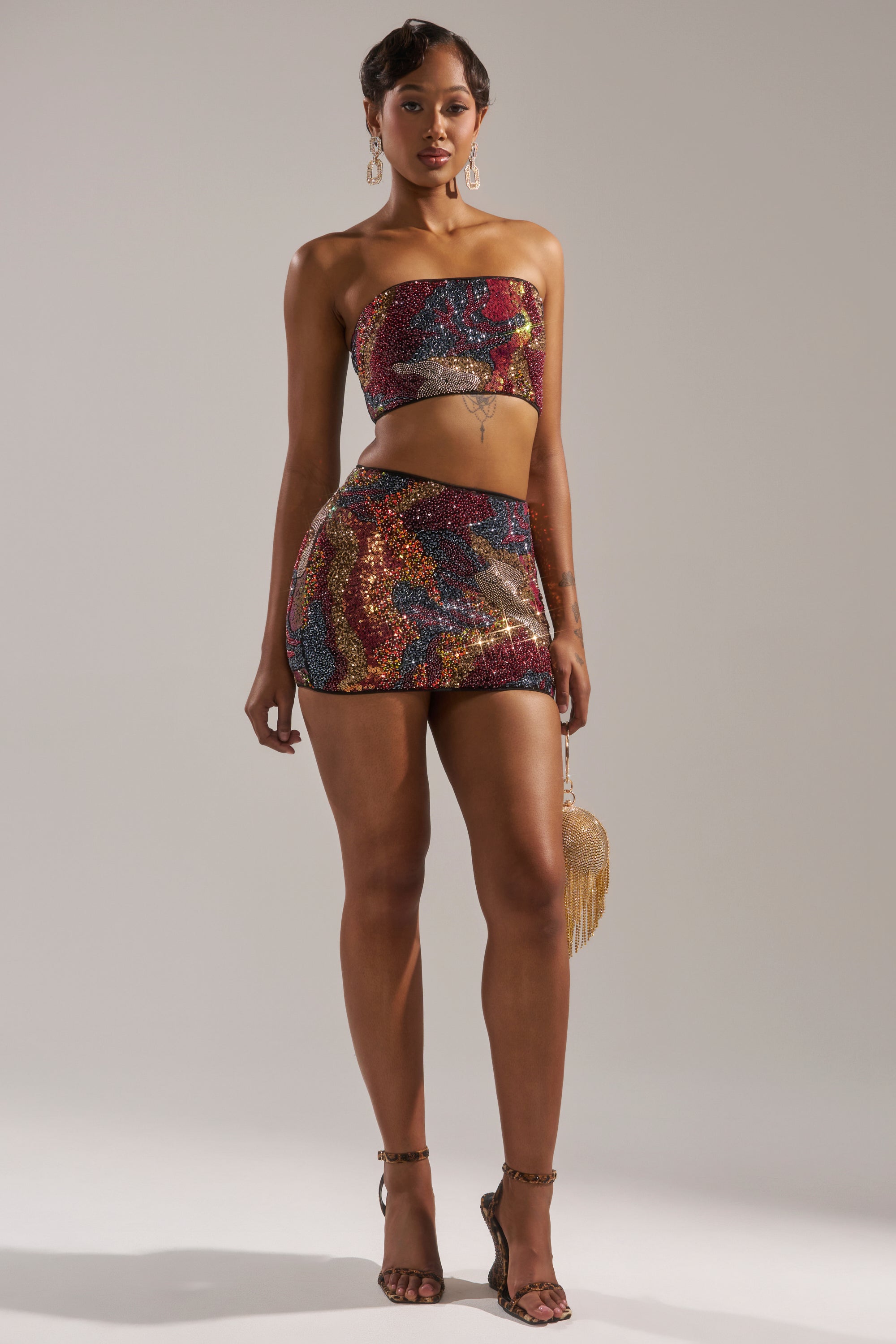 Glitz is your middle name when you wear The AKIRA Label Golden Hour Sequin Mini Skirt. This stunning piece is crafted from a slinky, stretchy mesh and totally adorned in an assortment of beaded and metallic sequin detailing. It features a high-rise, elasticized waistband, a sleek inner lining, and a concealed side zipper closure. Complete with a curve-hugging, mini-length silhouette. Style with the matching AKIRA Label Golden Hour Sequin Bralette, platform boots, and chunky gold jewelry for a glowing finish.