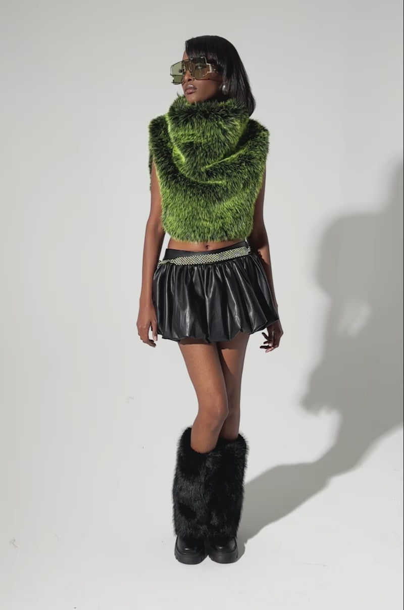 HEADED TO ASPEN SLEEVELESS FUR TOP IN GREEN