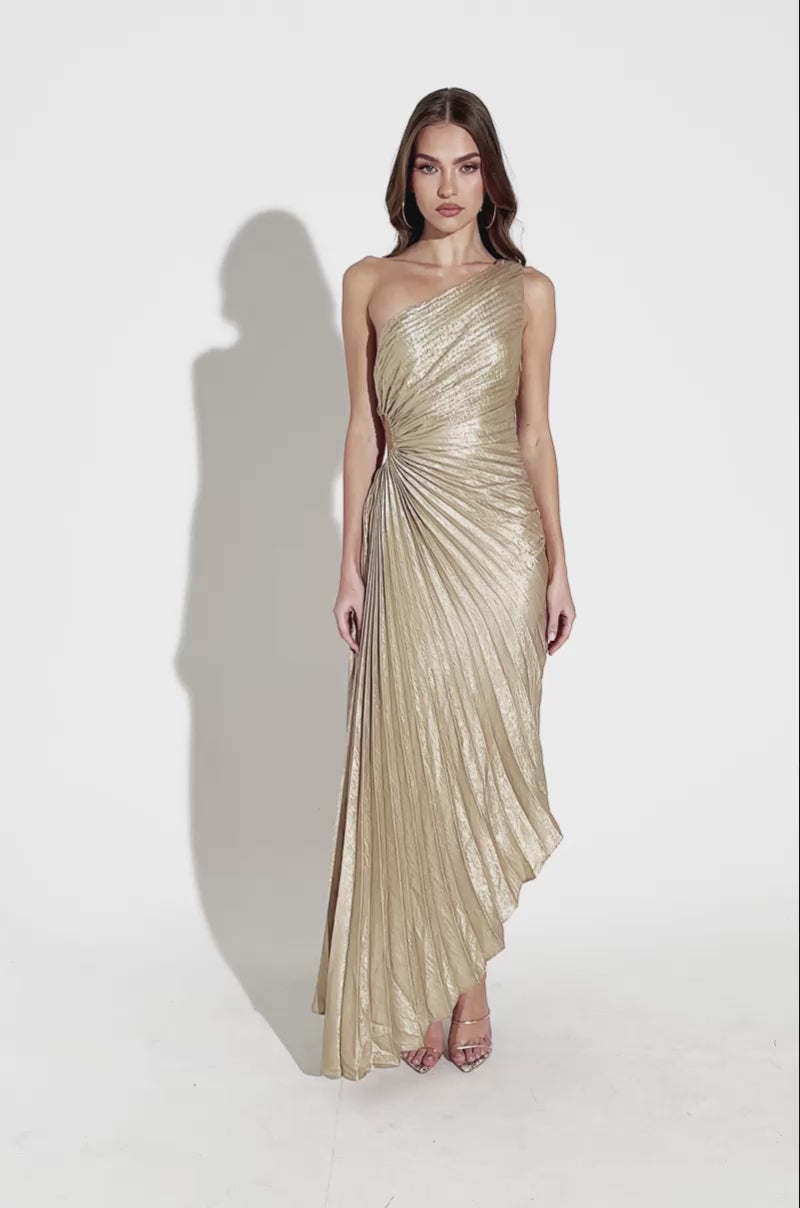 JULIETTE METALLIC PLEATED MIDI DRESS