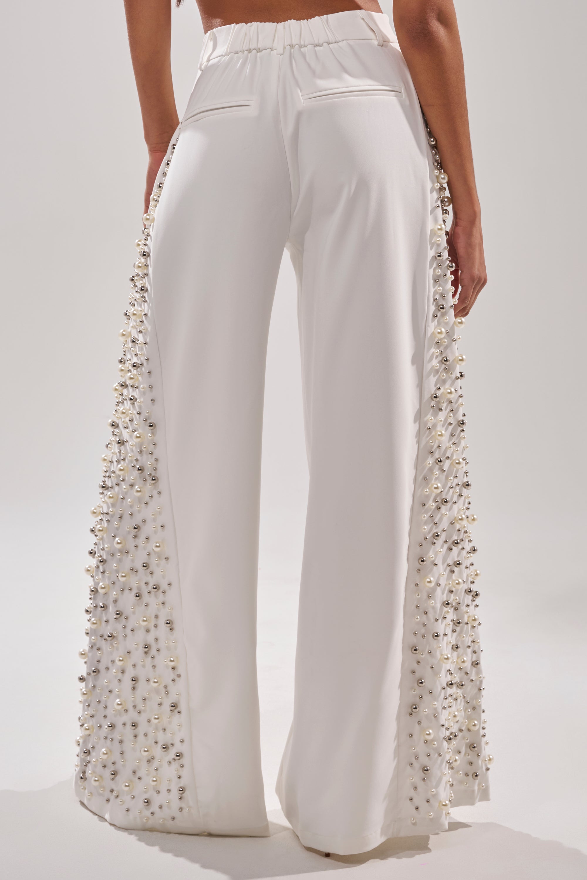 Let’s hear a little commotion for The AKIRA Label Keep It Going Embellished Trousers. Crafted from a sleek, stretchy fabric, they boast a flattering high-rise, ultra-wide-leg silhouette, functional belt loops, spacious side-slant pockets, and a zippered hook-and-bar front fly. The side-seam paneling is adorned with pretty pearls and spherical silver beads from hip to hem for a unique, eye-catching finish. Pair them with the coordinating Keep It Going Blazer for a perfectly polished look.