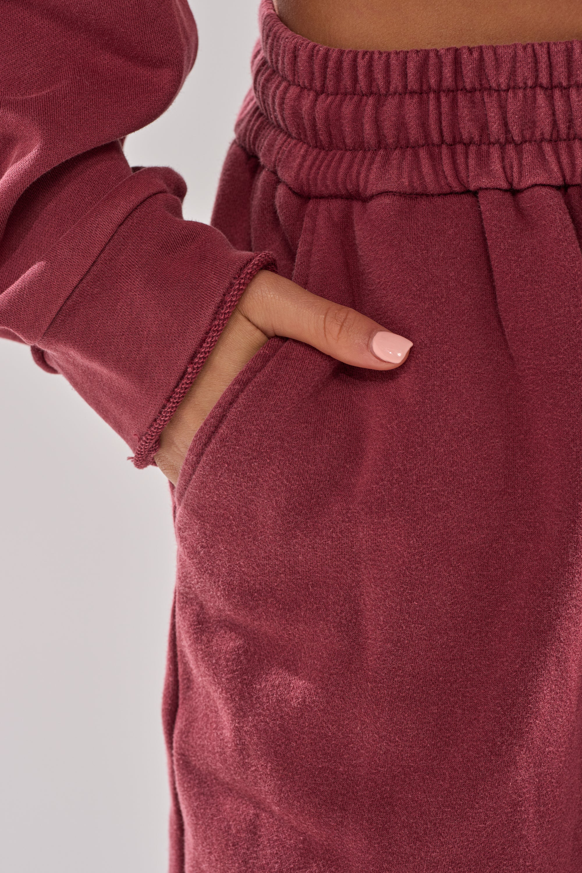 Strap in for endless amounts of coziness. The AKIRA Label Laced Up For Good Jogger In Plum is crafted from a soft cotton and boasts a high-rise fit, a shirred elastic waistband with drawstring closures, on-seam waist pockets, and unique lace-up panels on the lower back legs. Complete with a relaxed, wide-leg silhouette. Pair with the matching AKIRA Label Laced Up For Sweatshirt In Plum and your favorite slides to elevate your loungewear game.