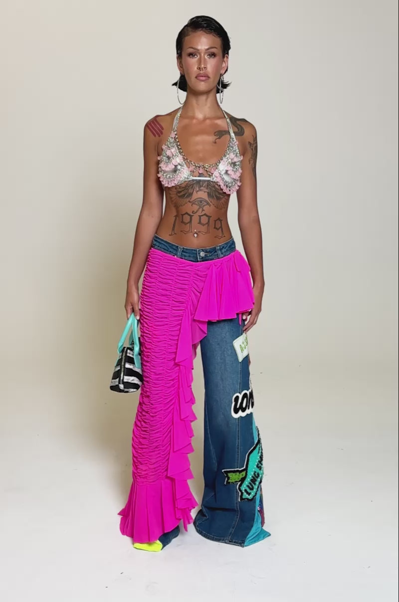 Draped in drama with The AKIRA Label Layered Up Mesh Ruffle Belt Skirt, a daring asymmetrical piece designed to command the spotlight. Crafted from stretchy sheer mesh, this skirt features ultra-flattering ruching and dramatic cascading ruffles that drape down one leg. Complete with an adjustable side-tie belt detail, and an ultra-mini cut on one side. This piece is perfect for poolside glam, festival looks, or statement layering over bodysuits.