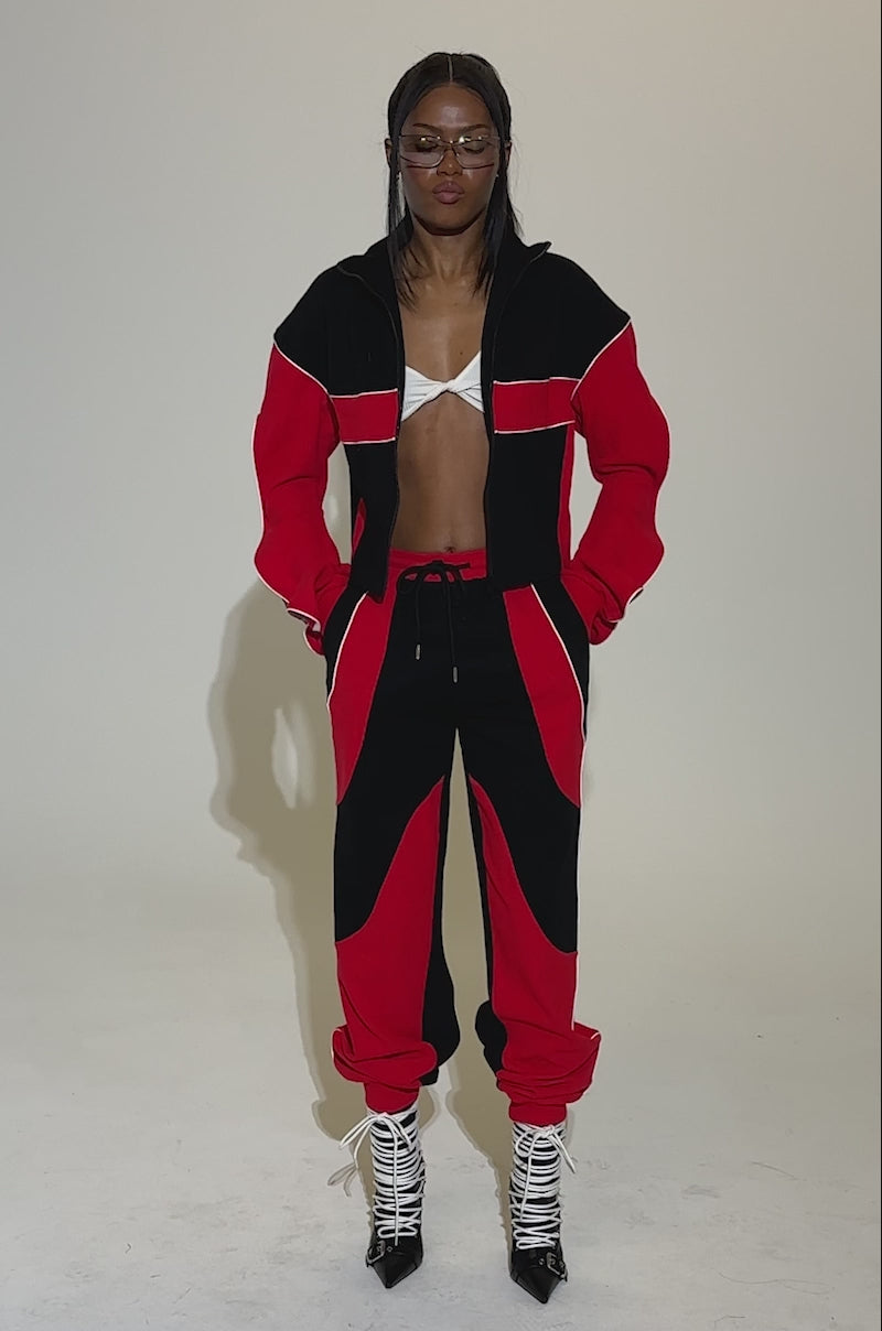 Roll with the punches in The AKIRA Label Let It Happen Zip-Up Sweatshirt. This sporty-chic piece features bold colorblocking, contrast paneling, and piping details for a sharp look. With exaggerated cut-out sleeves and a cropped fit, it’s a modern twist on classic track style. Complete with a high collar and a tonal zip-front closure. Pair it with the matching Let It Happen Joggers for an effortless statement set.