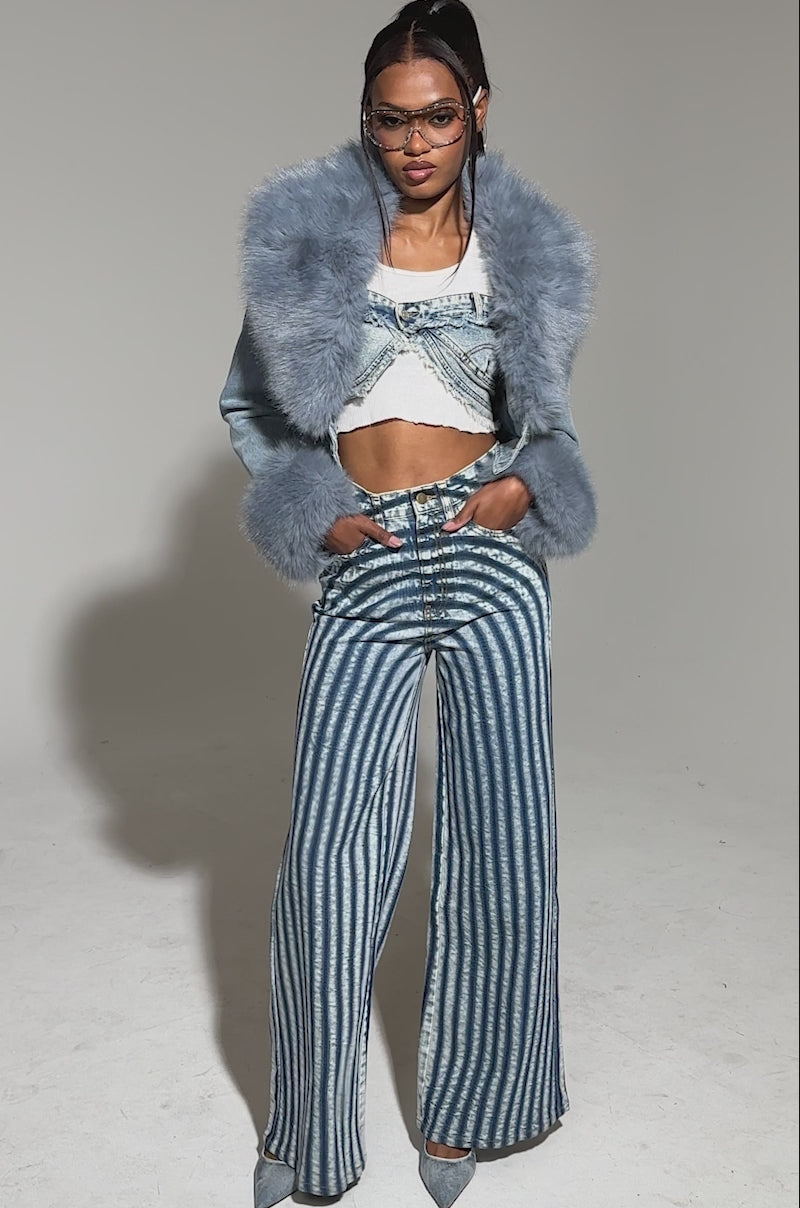 LETS GET CRAZY STRIPE WIDE LEG DENIM