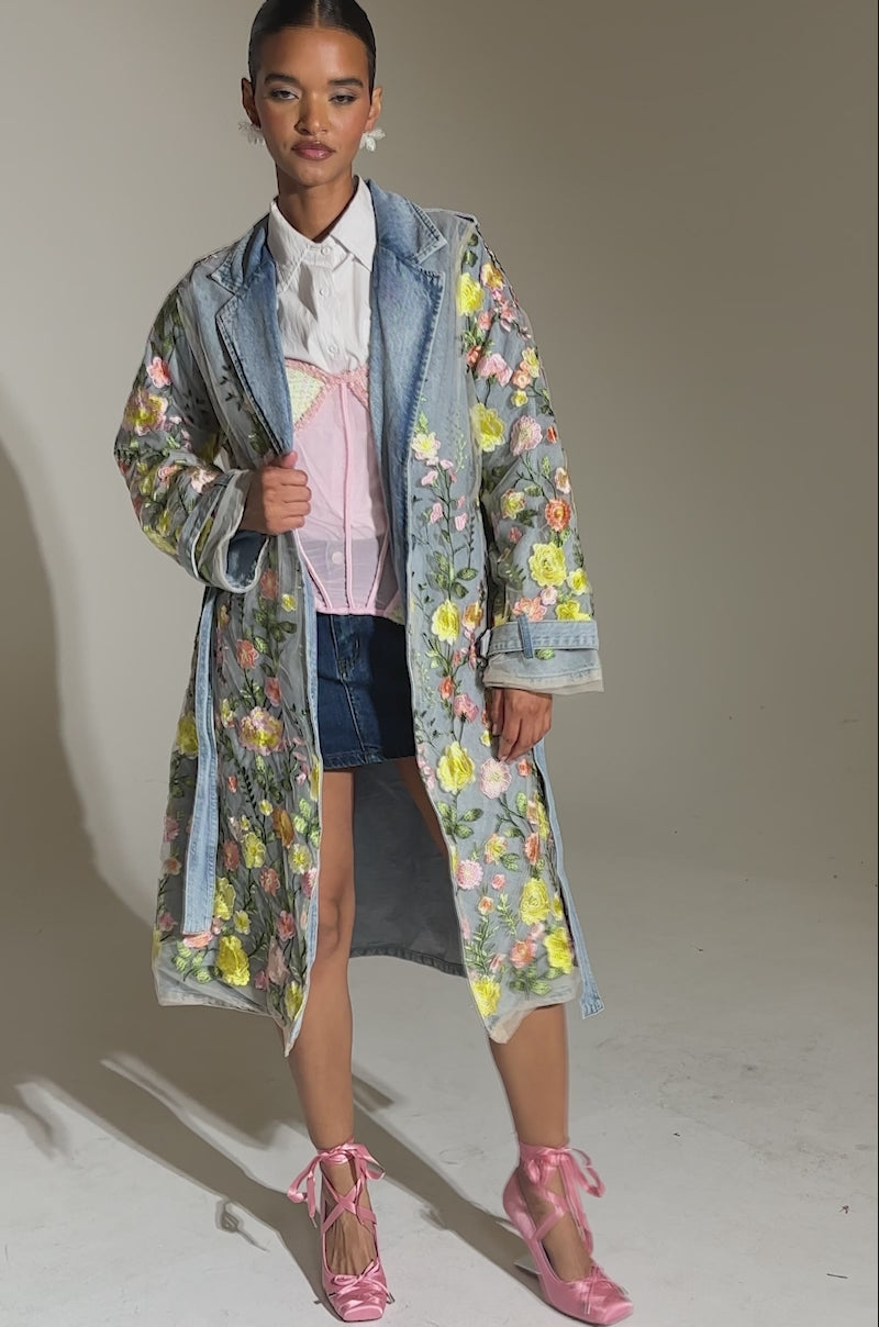 LIFE IN COLOR FLORAL DENIM TRENCH