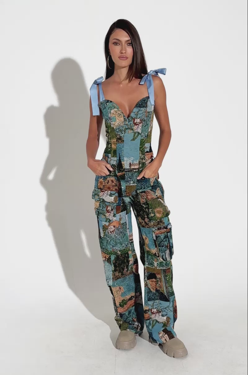 Van Gogh off, girl! The AKIRA Label Locked and Loaded Corset is crafted from a soft, non-stretch jacquard fabrication and features a plunging sweetheart neckline, a pointed hem, self-tie satin ribbon shoulder straps, smooth inner lining, and a lace-up back closure with coordinating ribbons to ensure a perfect, cinched fit. It’s complete with a colorful collage pattern featuring Impressionist-inspired artwork. Style with the coordinating Locked and Loaded Trouser to transform yourself into a living, breathing work of art.