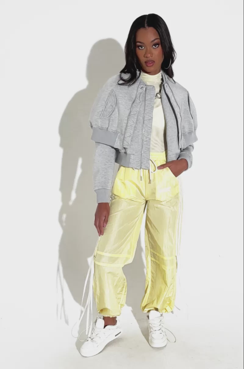 LYNX LAYERED BOMBER JACKET IN HEATHER GREY