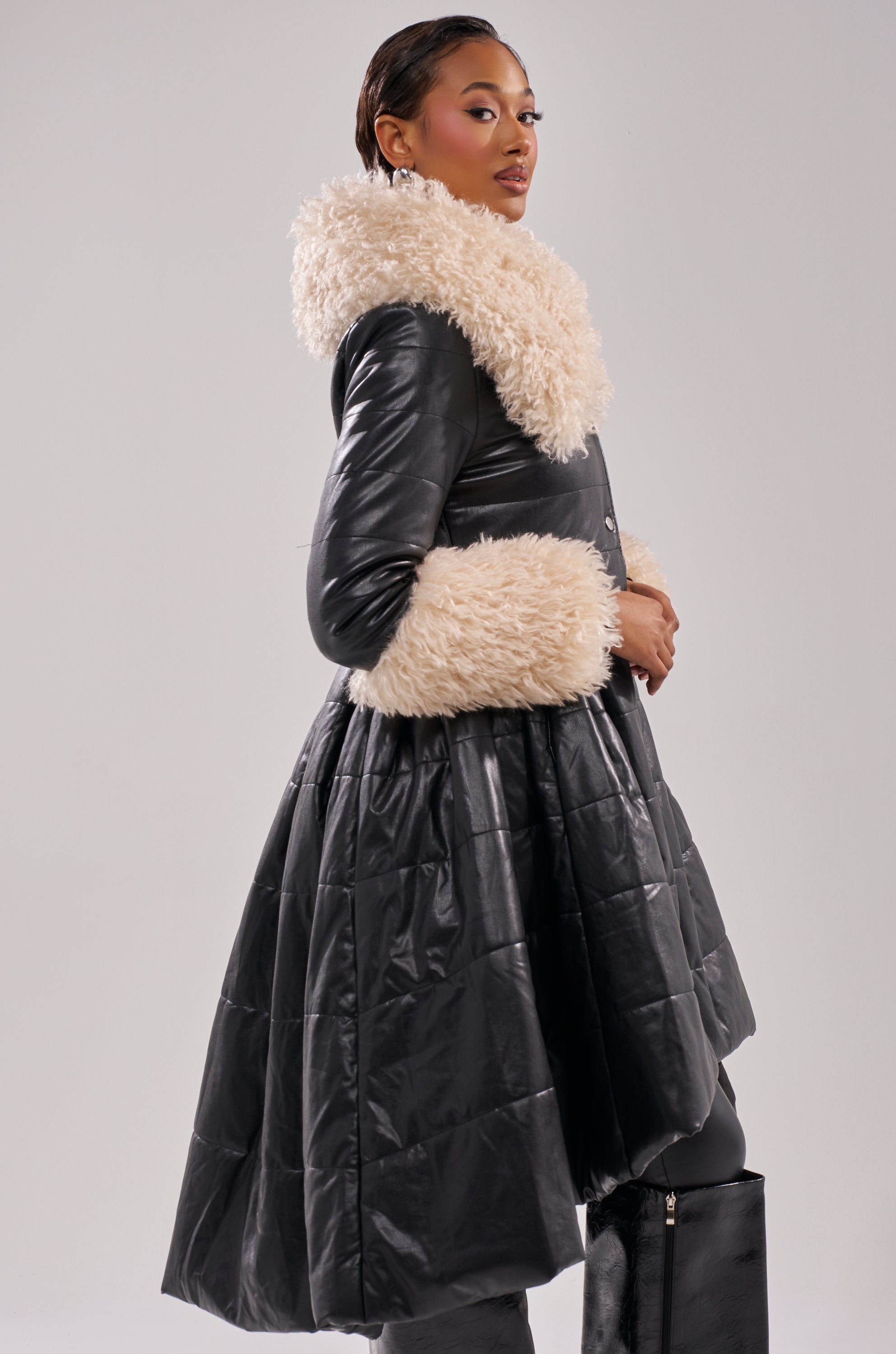 MIDTOWN PEPLUM PUFFER IN FAUX LEATHER
