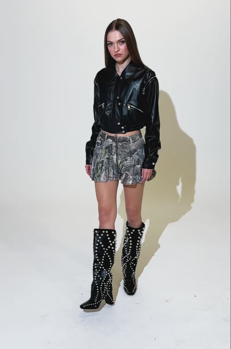 Make moves in silence in The AKIRA Label Movin’ Different Mini Skirt. This camouflage cutie is crafted from soft, lightweight denim and features a flouncy high-rise fit, a pleated construction, a three-pocket design, functional belt loops, and a front zipper closure.