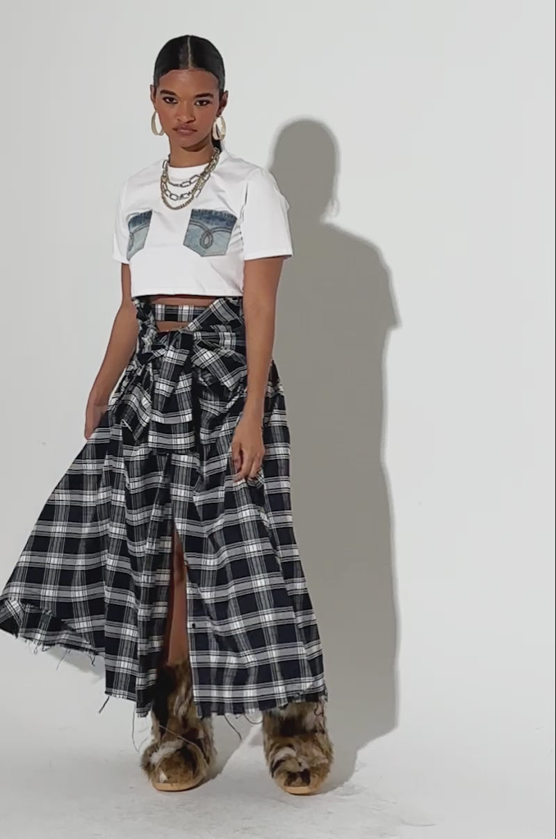 Flannel just got a facelift. The AKIRA Label Need You Plaid Maxi Skirt is crafted from a soft, semi-stretchy flannel fabrication and features a high-rise, flowing silhouette with a raw, lightly distressed hemline, a pleated construction, and a button down front closure. It’s complete with a fold-over collar and long shirt sleeve attachments at the waistline designed to be tied in front, creating the illusion of a coordinating shirt layered atop the skirt. Style with chunky moto boots and a turtleneck for a fabulous fall ‘fit.