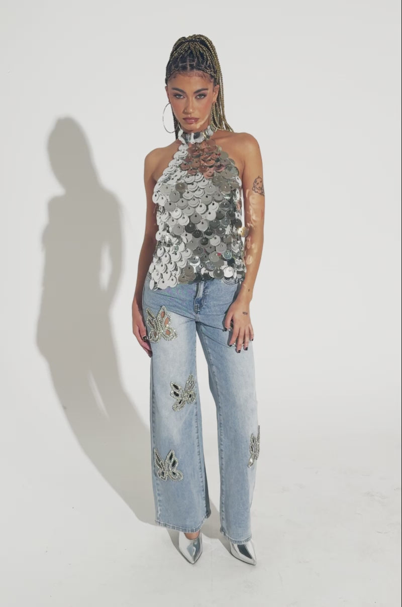 PARTY ALL NIGHT SEQUIN HALTER NECK TOP