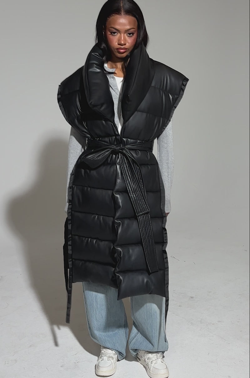 PILOT JONES LONGLINE PUFFER VEST IN FAUX LEATHER