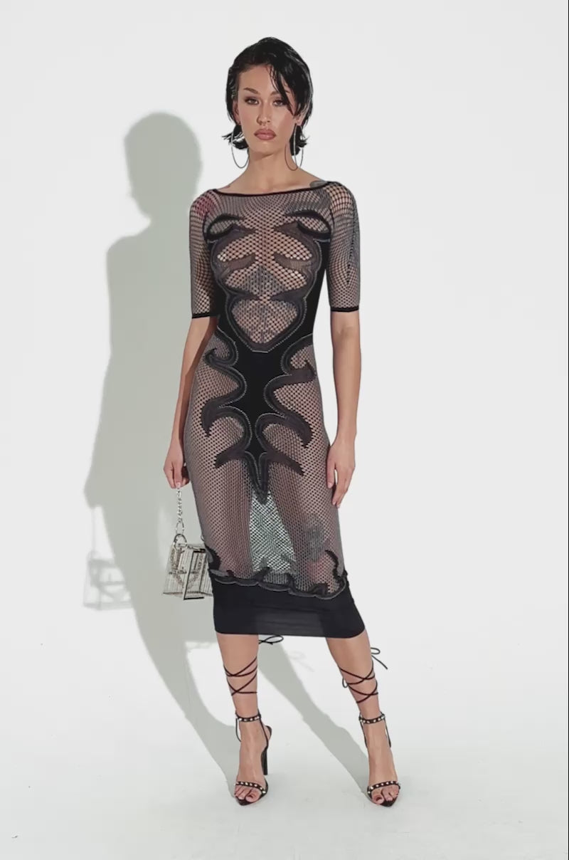 Well, the name speaks for itself. The AKIRA Label Sexy As Hell Mesh Midi Dress is composed of a super stretchy, mesh nylon fabrication and features a bangin’ bodycon fit, a scoop neckline, short sleeves, and a flame-like design at the hem and in areas where more coverage is necessary. Style with sleek pumps and a leather jacket for a mega-hot going-out look.